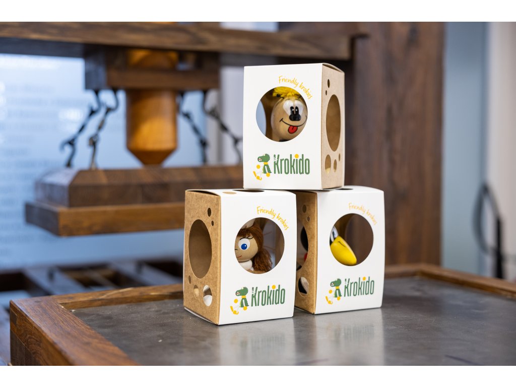 Dřevěné hračky a dekorace značky KROKIDO jsou naší vlastní produktovou řadou, zaujmou svým jedinečným vzhledem, sytými barvami a vtipným pohybem. Jsou vyráběny výhradně v České republice a jejich velkým přínosem je originální ruční malba celkový podíl ruční práce, jejichž výsledkem je vysoká kvalita. Vyznačují se vysokou bezpečností a odolností v nárazu i v tahu a jsou vyráběny a pravidelně testovány tak, aby vyhovovaly aktuálním evropským normám a mezinárodním bezpečnostním standardům. Při jejich výrobě je používán moderní způsob spojování dřevěných dílů a bezpečného uchycení malých částí. Vývoj i výroba všech hraček a dětských dekorací značky KROKIDO probíhá pouze v České republice. Barvy a laky použité při výrobě jsou vysoce kvalitní, zdravotně nezávadné a certifikované pro použití na hračky, a to i pro nejmenší děti. Dokonalá povrchová úprava a kvalitní ruční malba detailů je u značky KROKIDO samozřejmostí. K výrobě hraček a dekorací KROKIDO jsou používány především přírodní materiály. Hlavním materiálem je bukové dřevo získávané výhradně z tuzemských zdrojů a pouze z těžby šetrné k životnímu prostředí.
