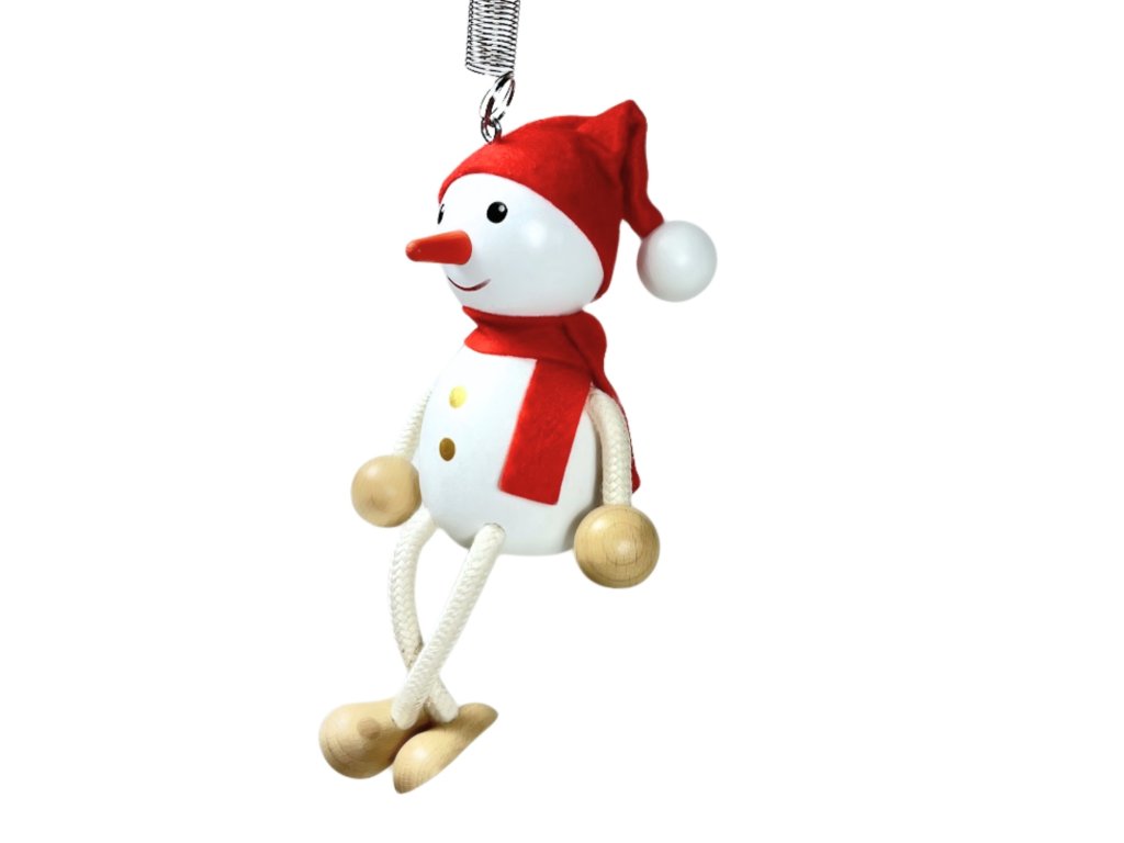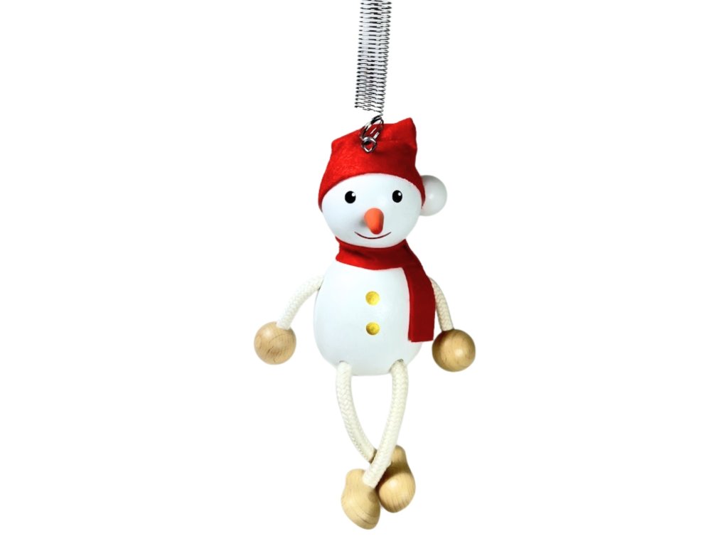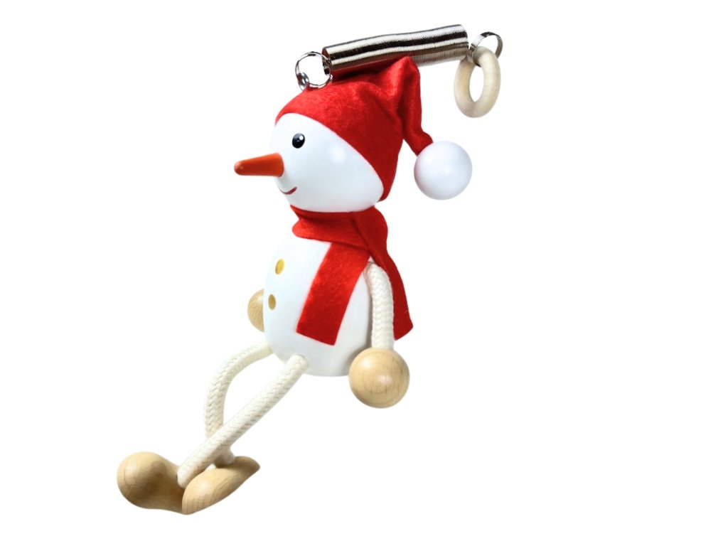 Sněhulák - dřevěná figurka na pružině
