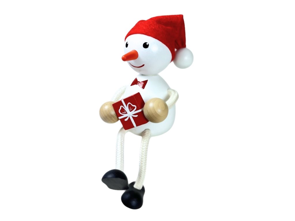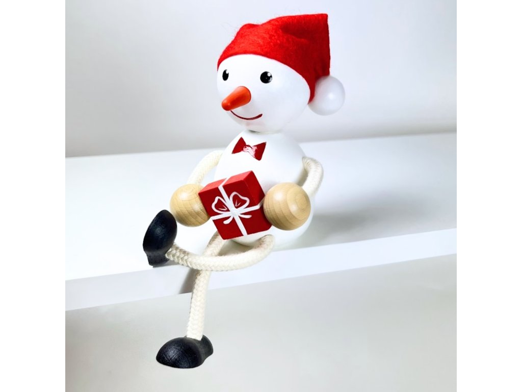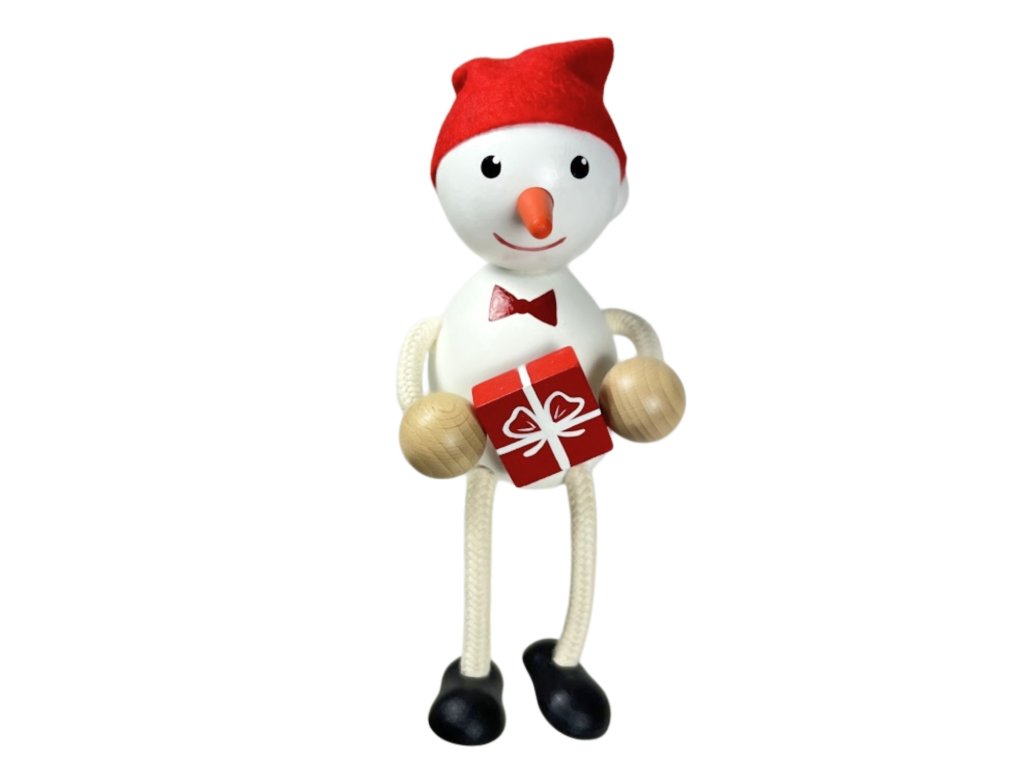Sněhulák s vánočním dárkem - dřevěná figurka