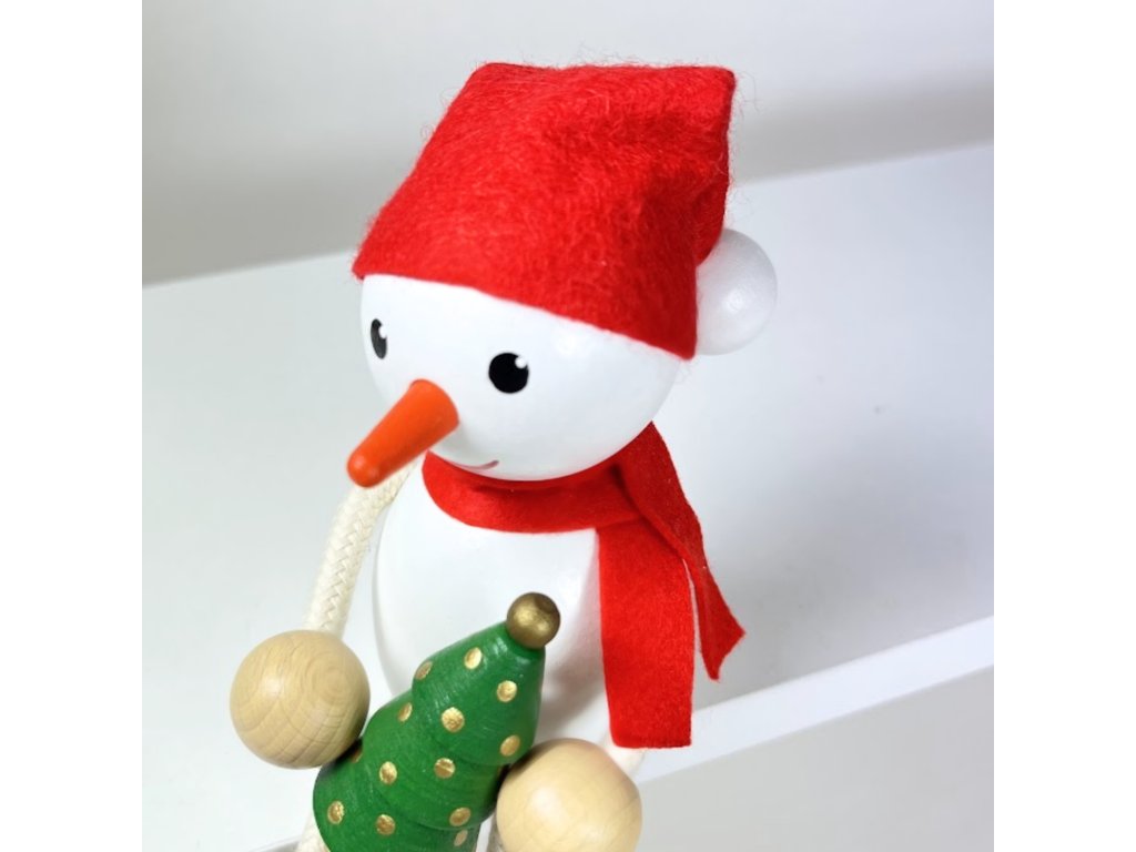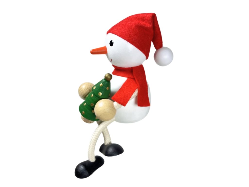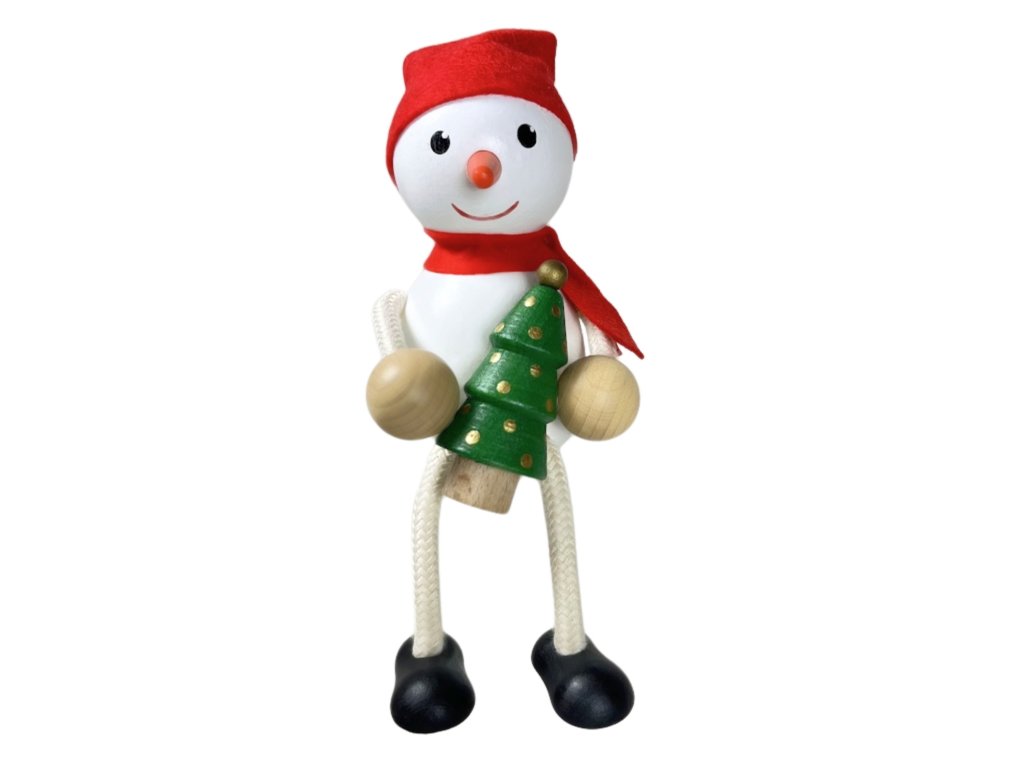 Sněhulák s vánočním stromečkem - dřevěná figurka