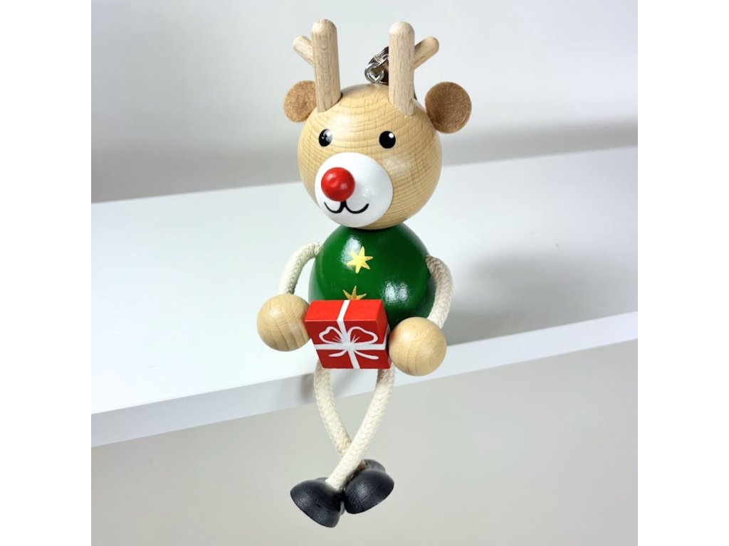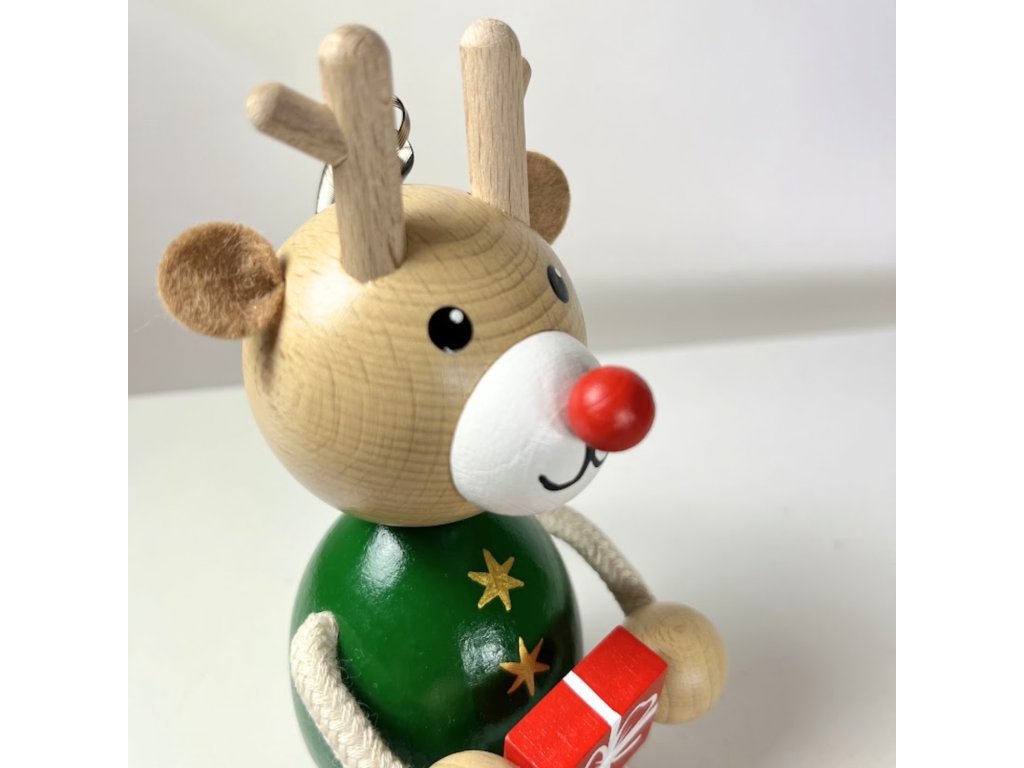 Ručně malovaná figurka na pružině představující vánočního Soba s dárkem je nádhernou dekorací v dětském pokoji nebo ve Vašem domově. Spolu s dalšími dřevěnými kamarády vykouzlí ve Vašem domově sváteční duch Vánoc.