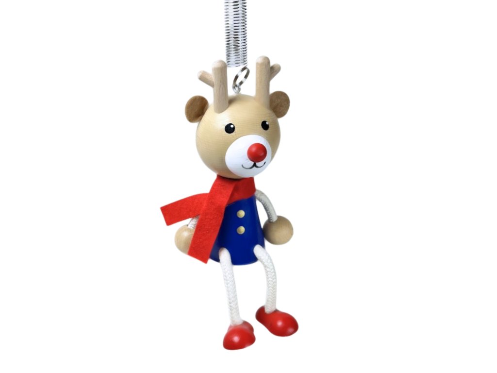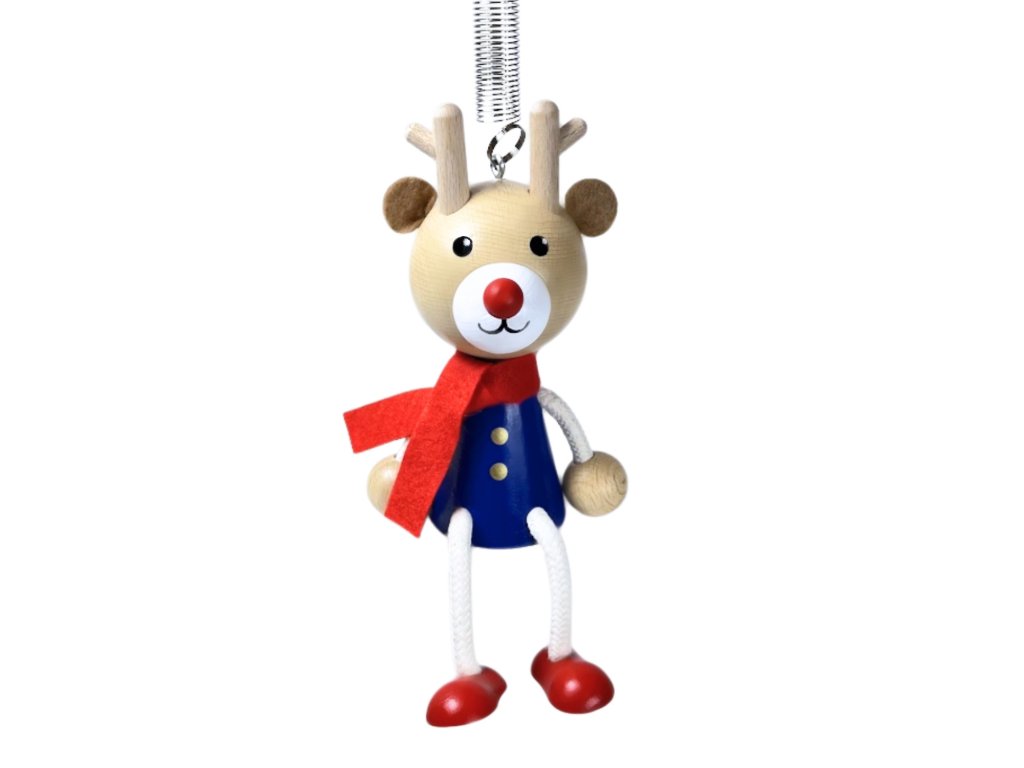 Ručně malovaná figurka na pružině představující vánočního Soba se šálou je nádhernou dekorací v dětském pokoji nebo ve Vašem domově. Spolu s dalšími dřevěnými kamarády vykouzlí ve Vašem domově sváteční duch Vánoc.